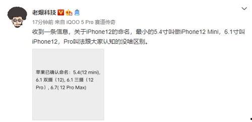 你听说了吗?最近关于苹果12的爆料可是满天飞啊!作为一个科技爱好者,我怎么能错过这个大事件呢?这不,我可是把最新的消息都给你搜集全了,快来跟我一起看看吧!